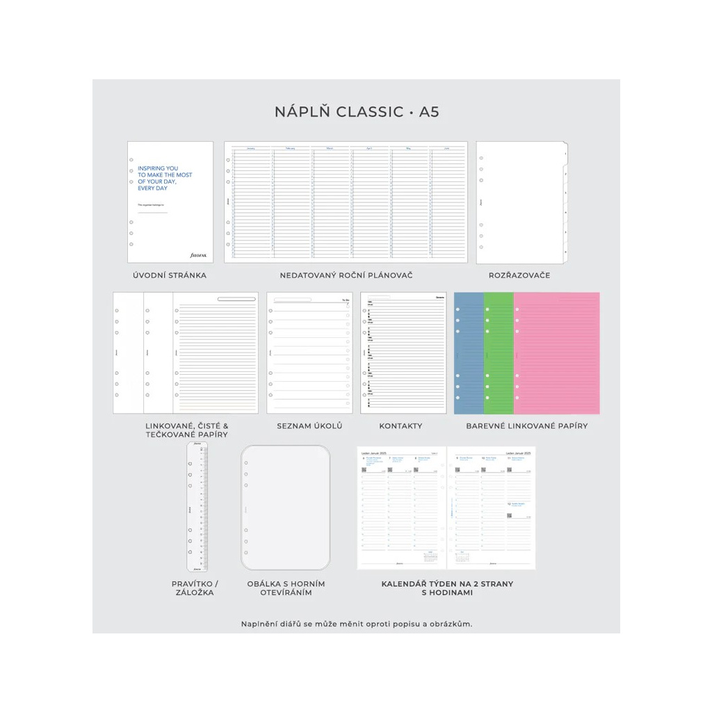 Diář Filofax The Original | A5 Malinová fleppi náplň na zbytek roku 2025