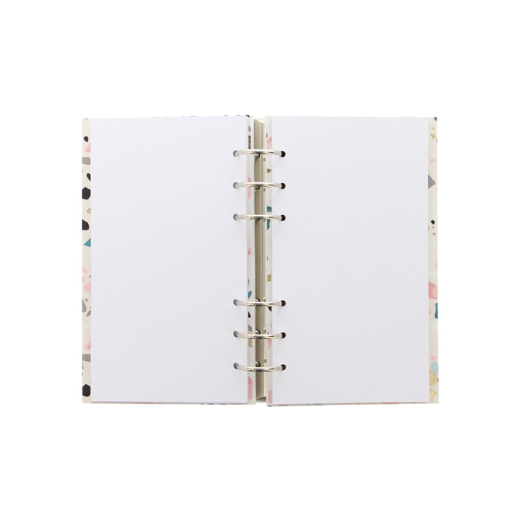 Seznamte se s novým stylovým přírůstkem kolekce Architexture. Clipbook Terrazzo Osobní má hladký povrch s krásným skvrnitým vzorem. Stránky si můžete libovolně přemístit a znovu naplnit. Vytvoříte si tak zápisník, který vám vyhovuje.