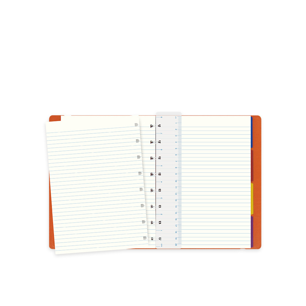 Filofax Notebooky nabízejí jednoduchost poznámkového bloku spojenou s volností personalizace. Pevné desky z příjemného materiálu chrání obsah vašeho zápisníku. Dvojitá kroužková vazba umožňuje jednoduše přidávat, odebrat nebo přemístit jednotlivé stránky dle libosti.