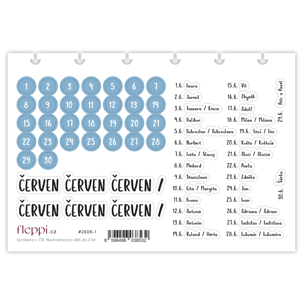 Měsíční samolepkový kit – nedatovaný diář | Červen 2026