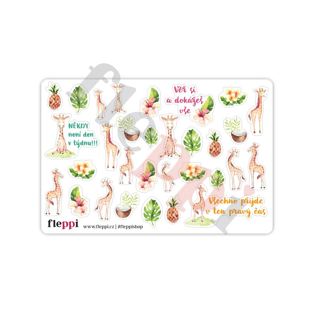 Tropické léto si žádá tropickou výzdobu diáře. A proto jsme pro vás připravili tento letní kit plný roztomilých žirafek, ananasů, kokosových skořápek, palmových listů a zářivých letních barev.
