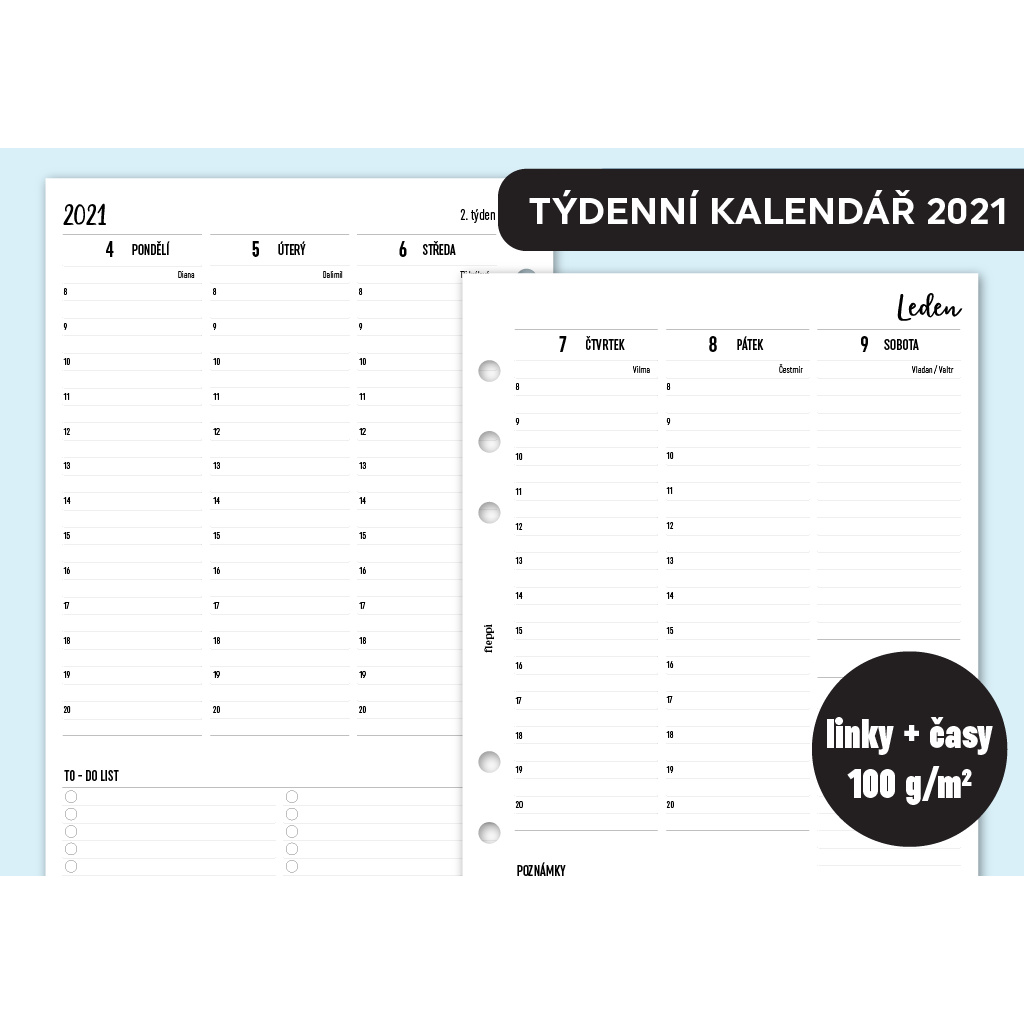 Náhradní náplň do diáře s týdenním kalendář na rok 2020. Rozložení týdne je na dvě strany s vertikálním zobrazením dnů. Na výběr je ve verzi linkované, linkované s časy a čisté sloupce. Součástí náplně jsou i další listy pro vaše plánování.
