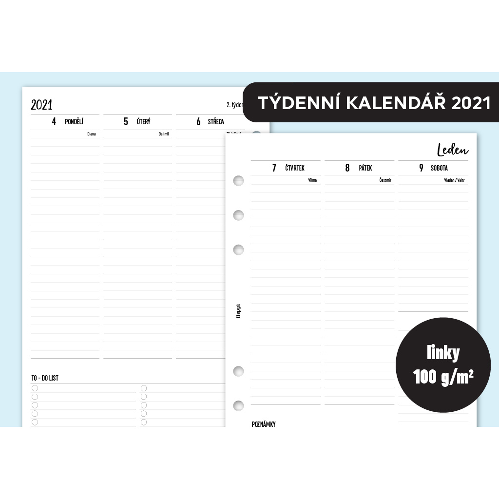 Náplň do diáře - Kalendář 2021, týden/2 stranu, vertikální - 2. jakost