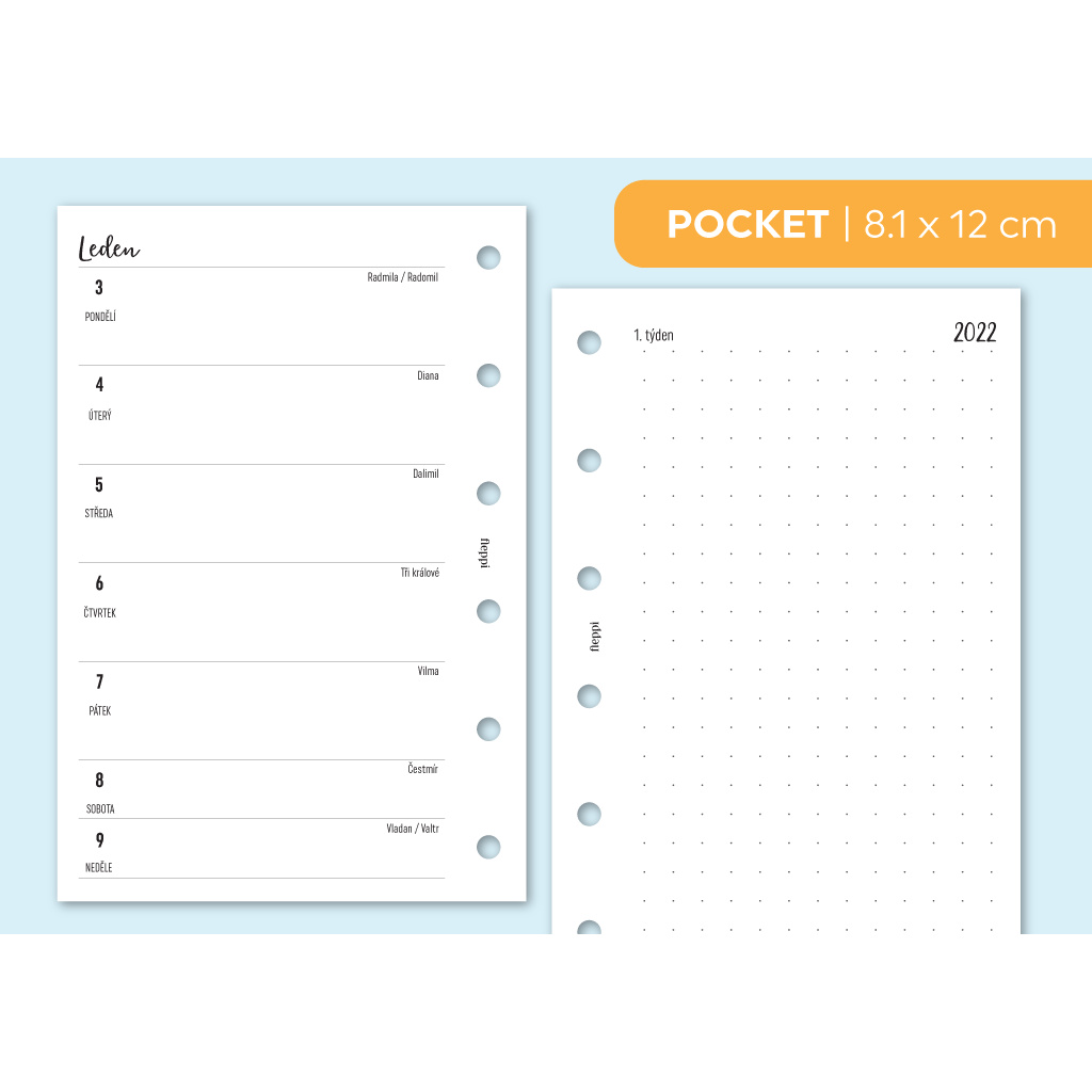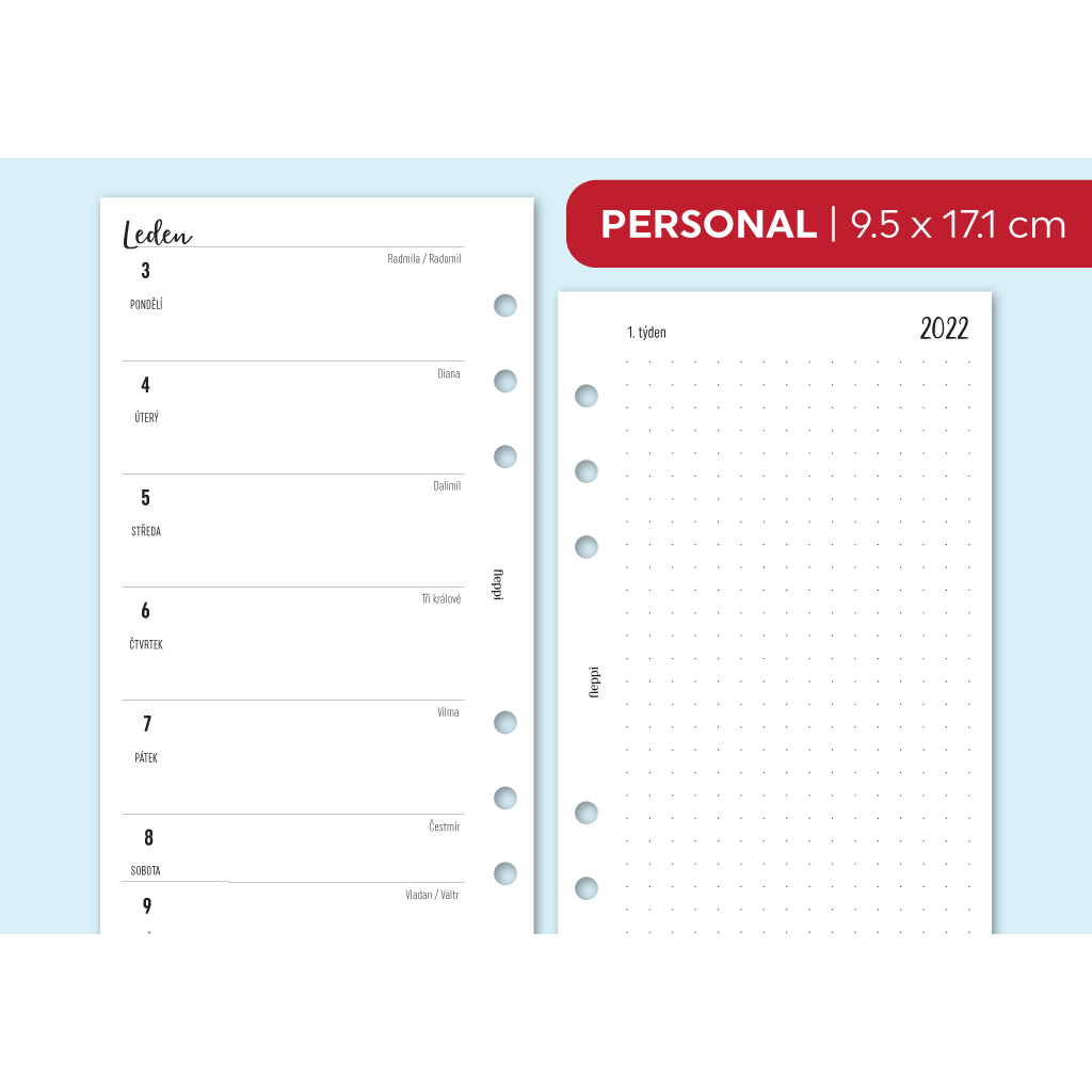 Náplň do diáře - Kalendář 2022, týden/1 stranu + poznámky tečkované