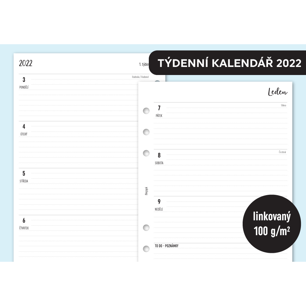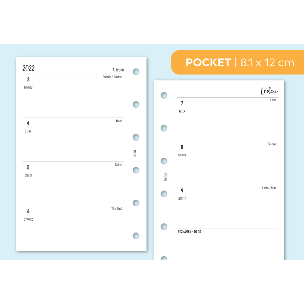 Náplň do diáře - Kalendář 2022, týden/2 stranu, horizontální