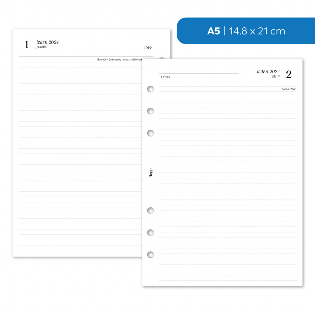 Náplň do diáře - Kalendář ČERVENEC - PROSINEC 2024, denní linkovaný