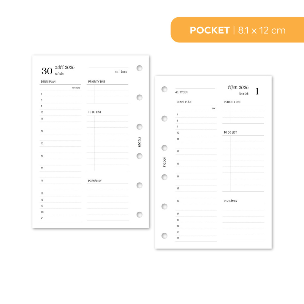Náplň do diáře - Kalendář 2026, denní - časy + to do + poznámky