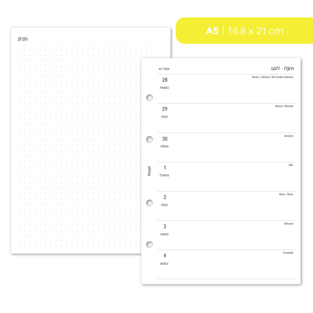 Náplň do diáře - Kalendář 2026, T1S čistý + tečkované poznámky vlevo (210)
