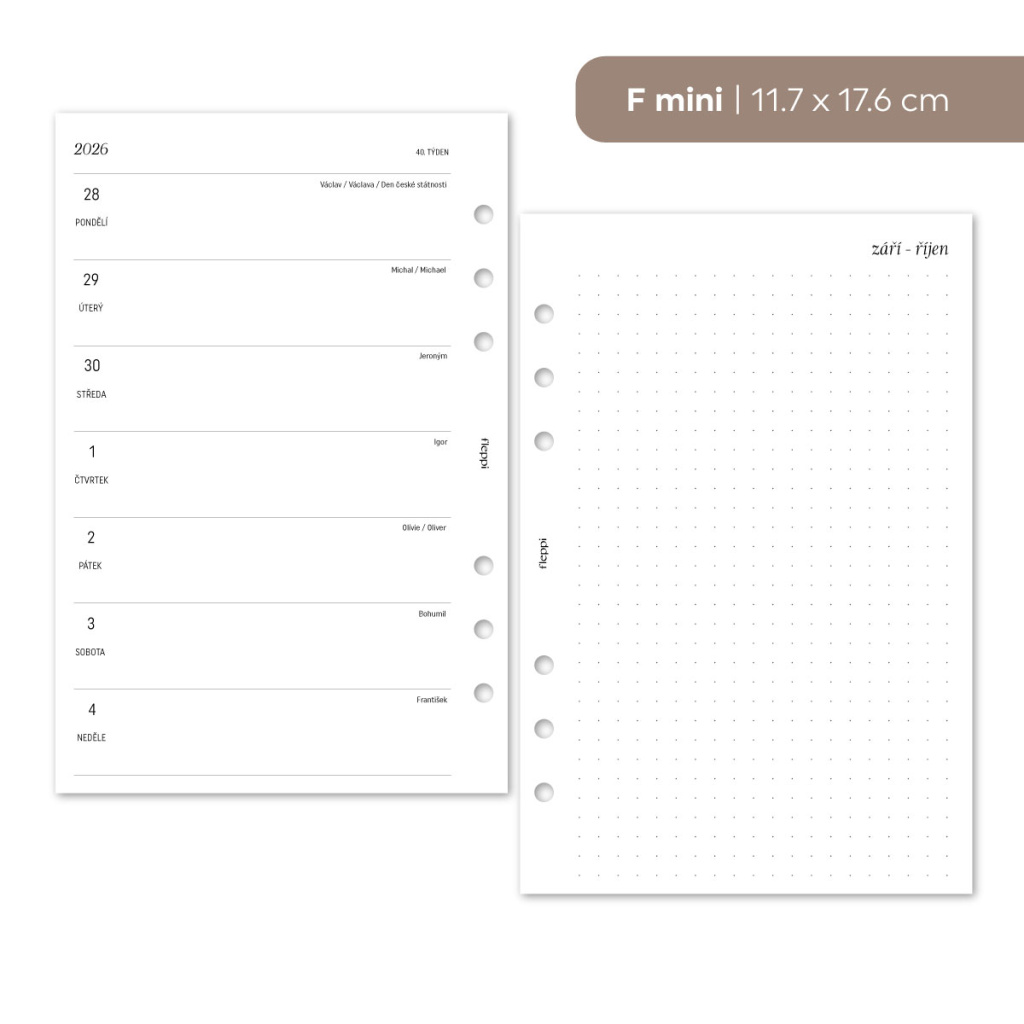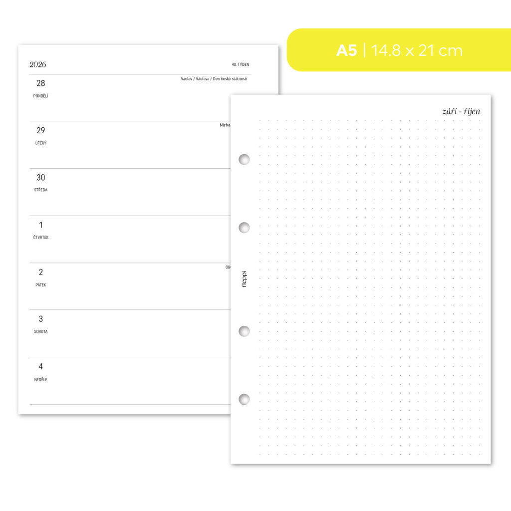 Náplň do diáře - Kalendář 2026, T1S čistý + tečkované poznámky vpravo (208)