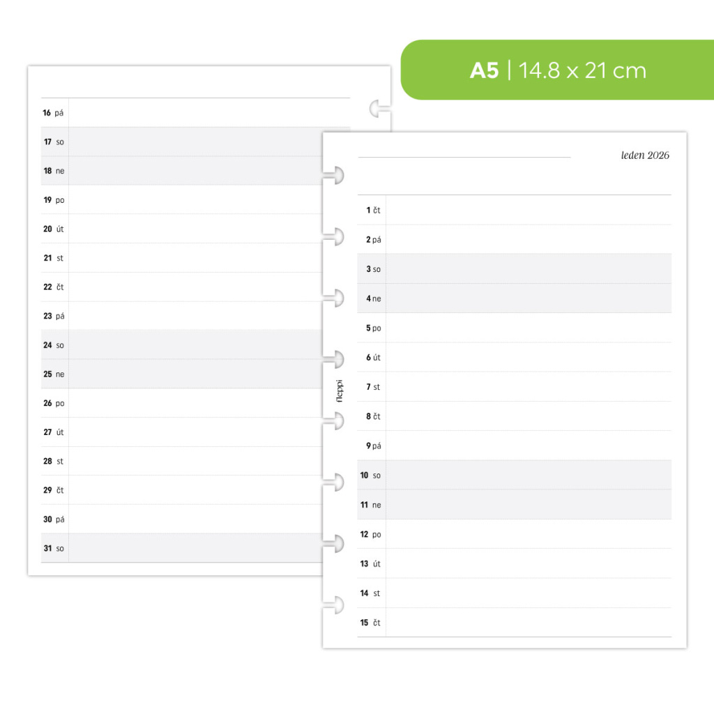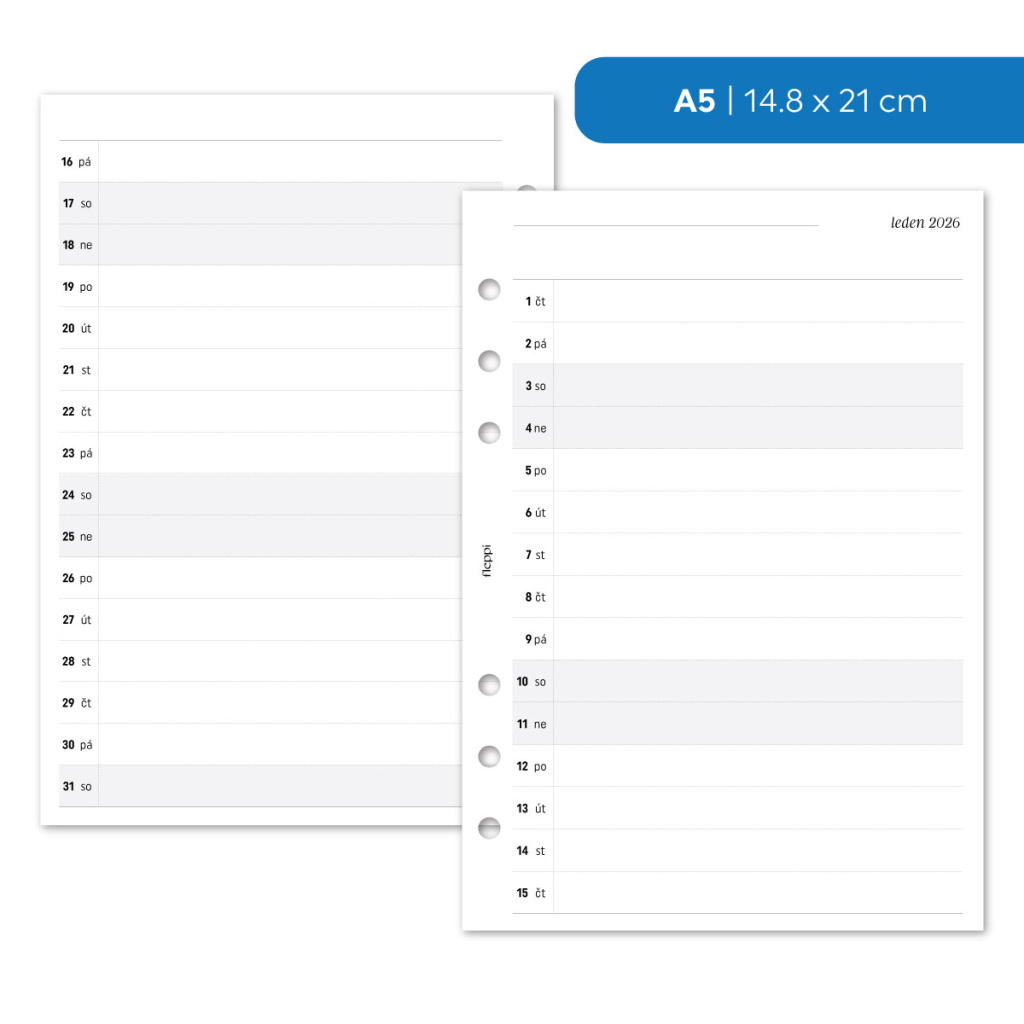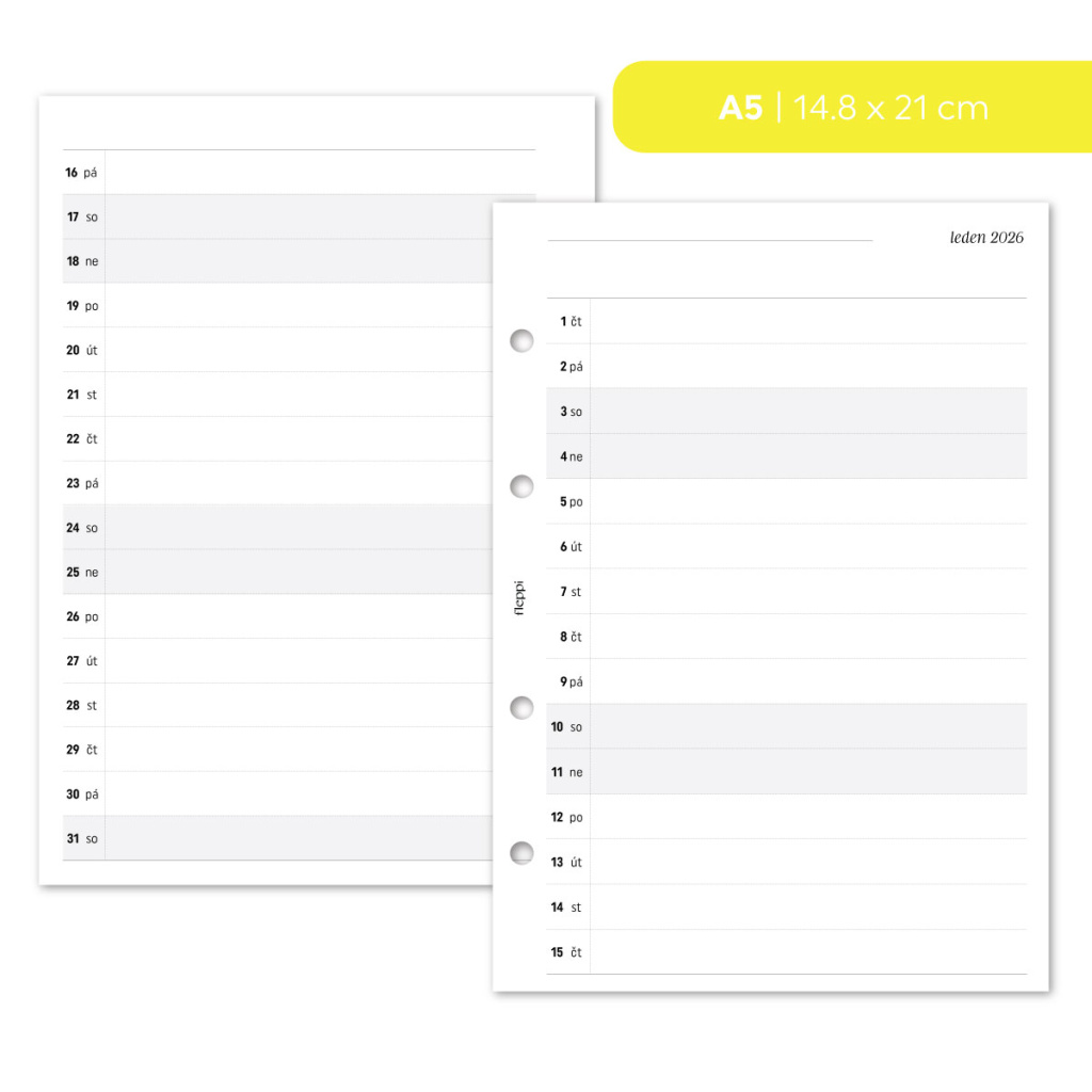 Náplň do diáře - Měsíční plán 2026 - 1 měsíc na 2 strany