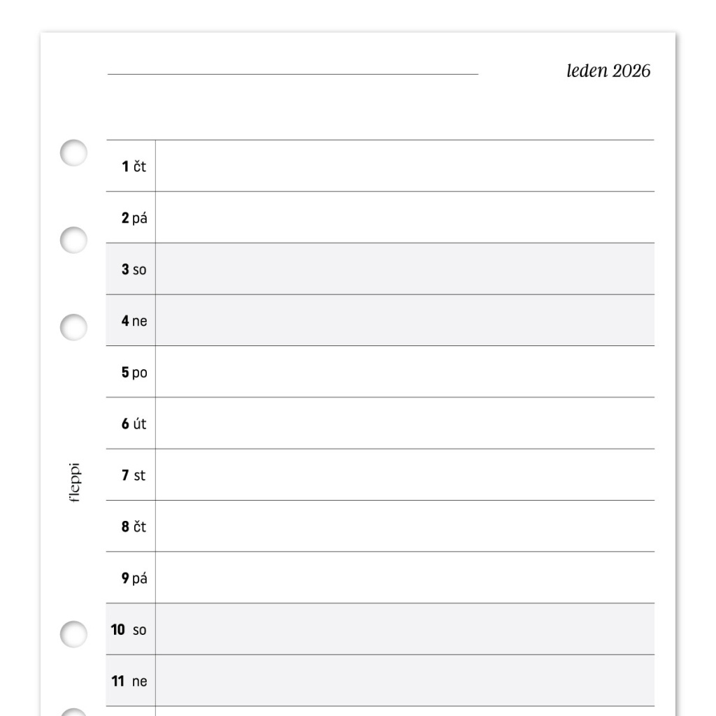 Měsíční plán na rok 2026 jako praktická náplň do vašeho kroužkového diáře, ve které najdete jeden měsíc přehledně na jedné straně. Perfektní pro úvod každého měsíce, kde budete mít rychlý přístup ke všem akcím, událostem a úkolům, které potřebujete mít na očích.