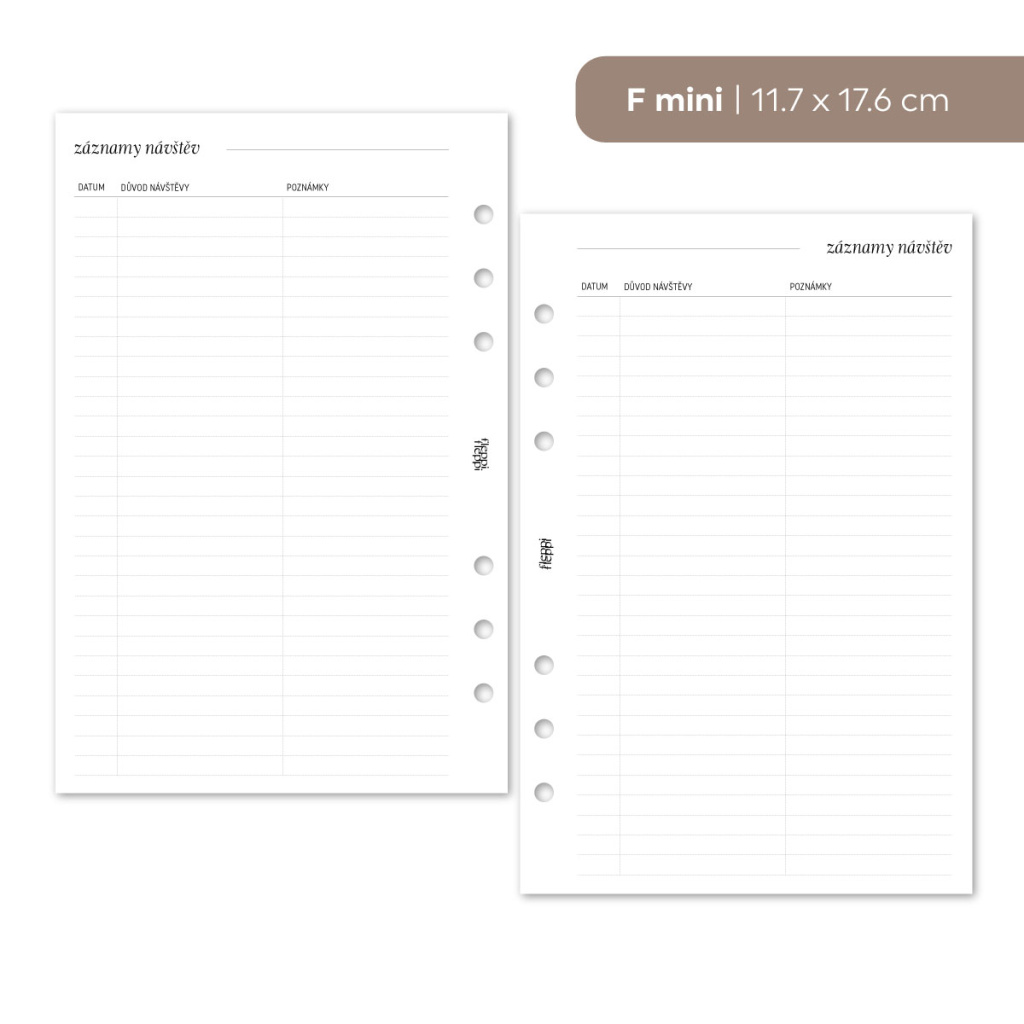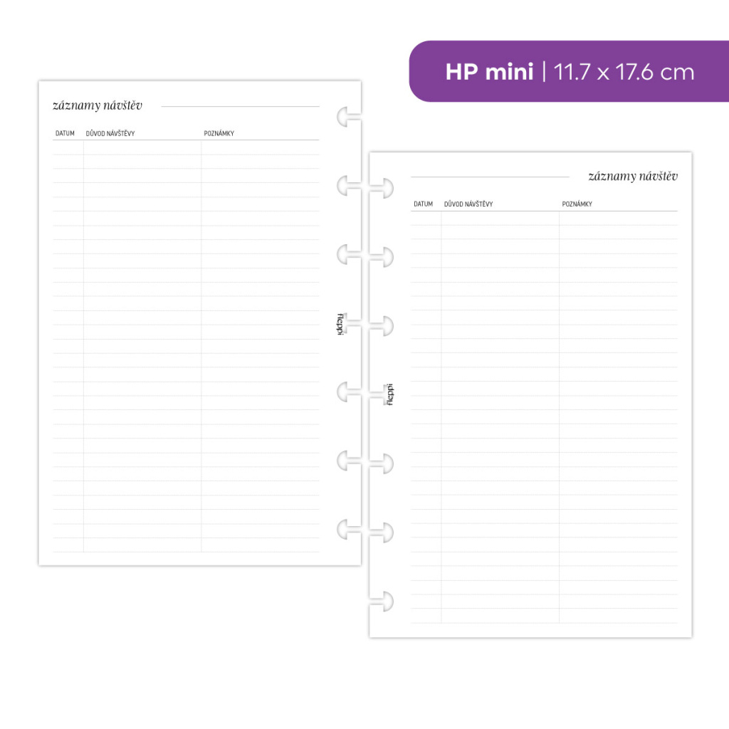 Pokud chodíte k některým lékařům častěji a potřebujete více prostoru pro detailní záznamy z návštěv, doplňte tuto náplň o rozšiřující listy Záznamy návštěv.
