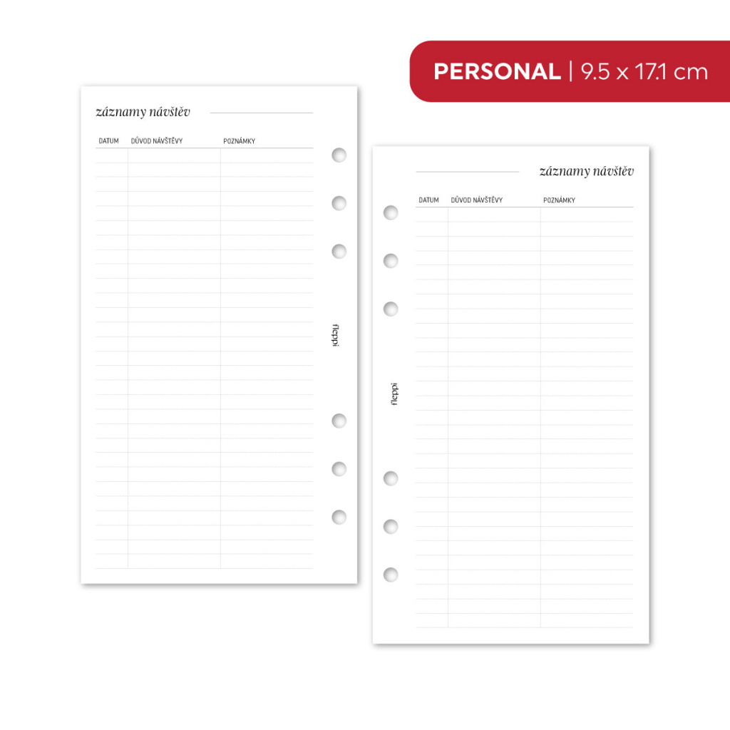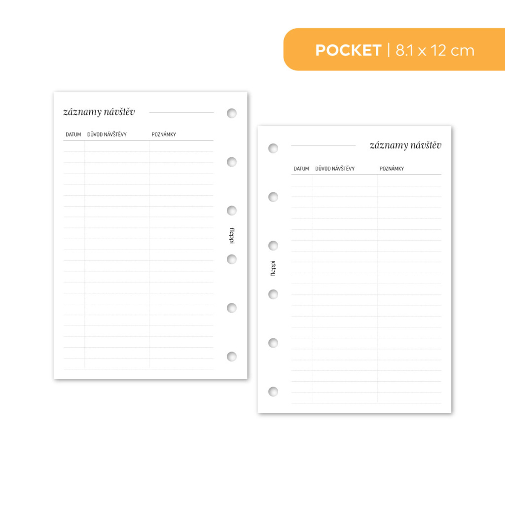 Tato náplň je ideálním pomocníkem pro každého, kdo chce mít své zdraví přehledně zorganizované. Umožní vám snadno najít potřebné kontakty, připomenout si naplánované kontroly a zapisovat si vše důležité z jednotlivých návštěv. Skvěle poslouží i rodinám – můžete v ní sledovat lékaře dětí, partnera nebo rodičů.