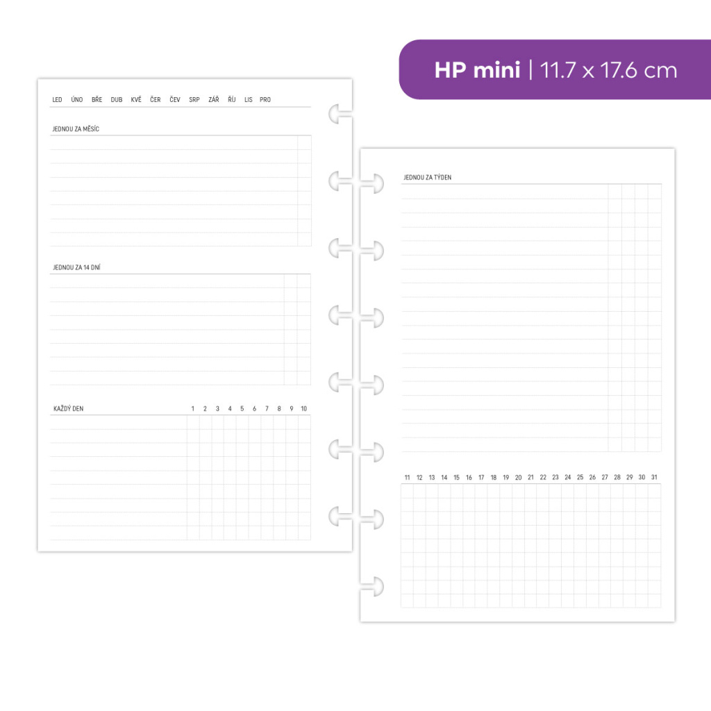 1. Velikost náplně: | A5, Personal / Osobní, Pocket / Kapesní, HP mini |