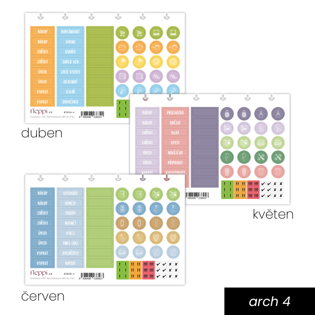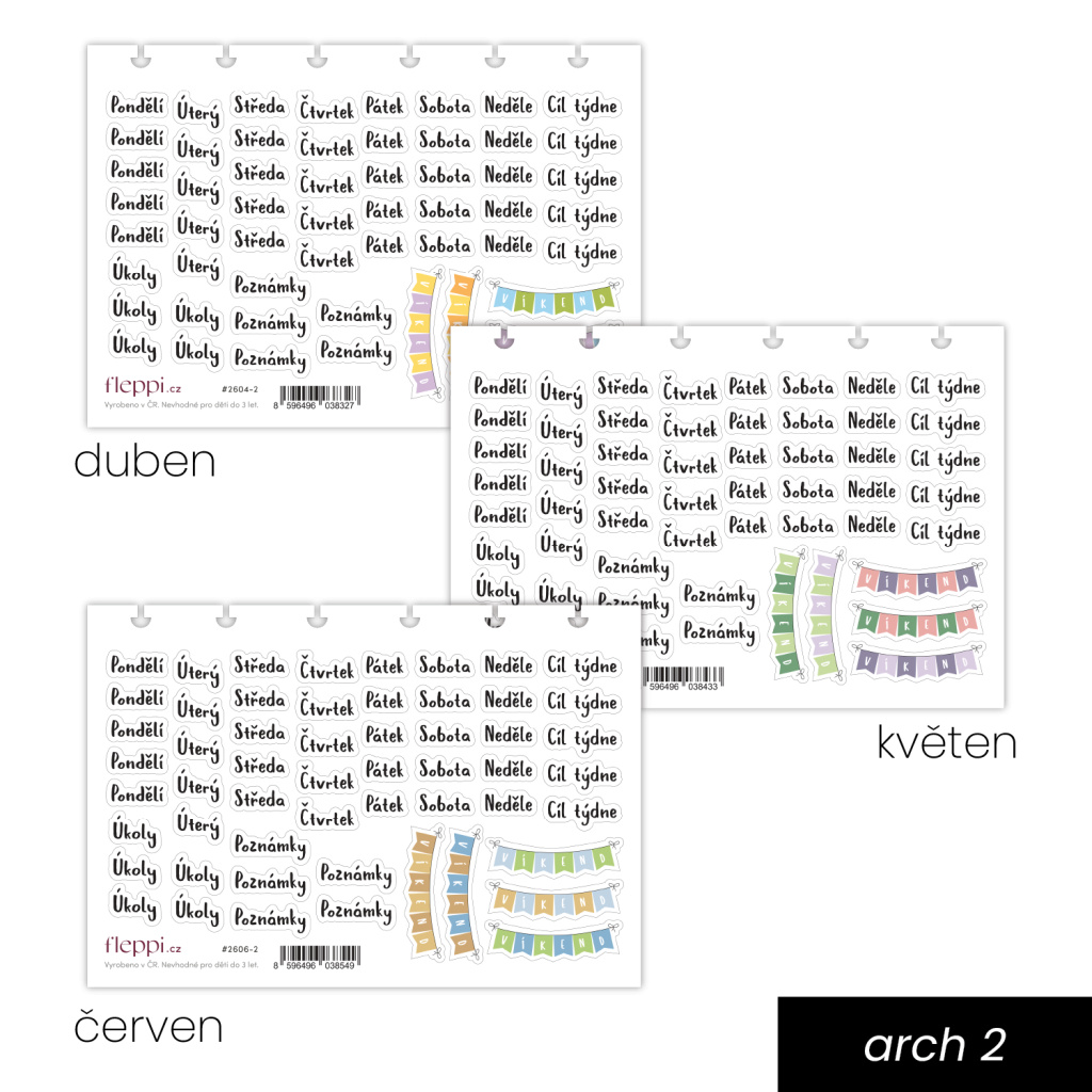Jednorázové samolepkové předplatné na 2. kvartál 2026 vám nabídne tři pečlivě navržené sady samolepek – pro duben, květen, červen – které vám plánování zpříjemní, zjednoduší a zároveň zkrášlí váš diář. Každá sada obsahuje 8 archů sladěných do jednotného grafického stylu. Najdete v nich praktické samolepky pro plánování (např. úkoly, poznámky, značky, ikonky) i dekorativní prvky, které dodají vašemu diáři nebo journalingu osobitý vzhled. Samolepky jsou navržené tak, aby spolu barevně ladily a daly se využít různými způsoby – podle vašeho stylu plánování.