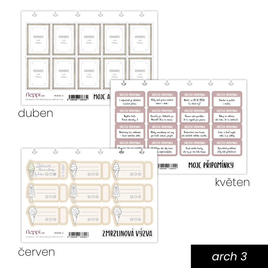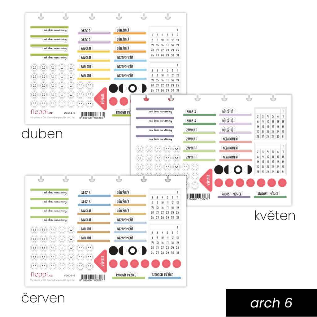 Toto předplatné je jednorázové – neobnovuje se automaticky a nekupujete žádný závazek do budoucna. Všechny tři sady dostanete najednou v jednom balíčku a dopředu se zde můžete podívat, co v něm bude – všechny sady jsou zde odhalené. Díky tomu se snadno rozhodnete, které aršíky využijete a objednáte, a které naopak ne. A protože balíček odesíláme s předstihem, máte vše připravené ještě před začátkem měsíce – bez stresu a na pohodu.