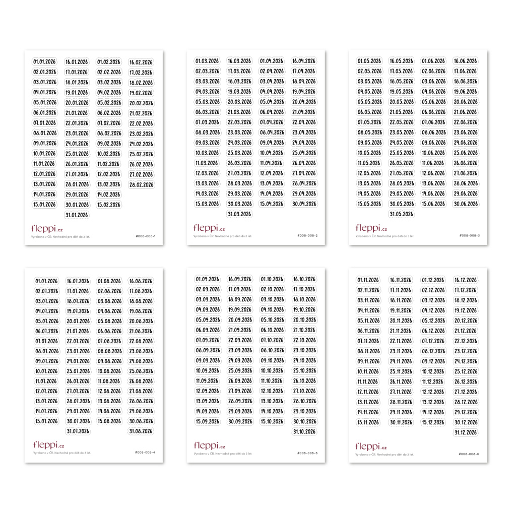 Sada 6 archů z transparentního materiálu s daty od 1. 1. 2026 do 31. 12. 2026. Skvěle se hodí k vytvoření vlastního diáře nebo deníku v jakémkoliv sešitu. Jednoduše nalepte data a váš diář bude vždy perfektně přehledný.