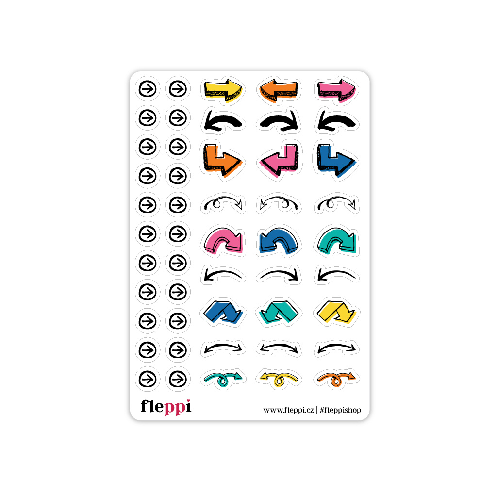 Samolepky šipek najdou ve vašem diáři široké uplatnění. Pomohou vám vyznačit důležité úkoly, přiřadit k událostem potřebné poznámky a komentáře a nebo jen rozveselit jednotlivé stránky.