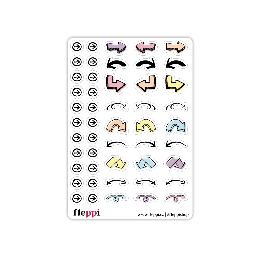 Samolepky šipek najdou ve vašem diáři široké uplatnění. Pomohou vám vyznačit důležité úkoly, přiřadit k událostem potřebné poznámky a komentáře a nebo jen rozveselit jednotlivé stránky.