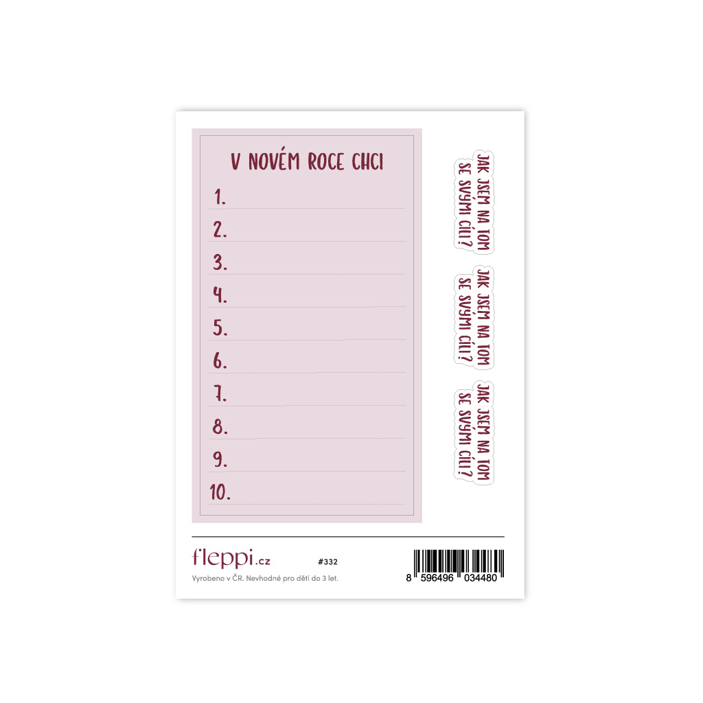 Samolepky Cíle pro nový rok vám pomohou jasně si zapsat své předsevzetí a mít je celý rok na očích. Najdete v nich praktickou tabulku pro 10 cílů a tři samolepky navíc, které vám připomenou vaše plány v průběhu roku. Díky nim budete mít své sny i kroky k nim vždy přehledně zaznamenané a blízko na dosah.