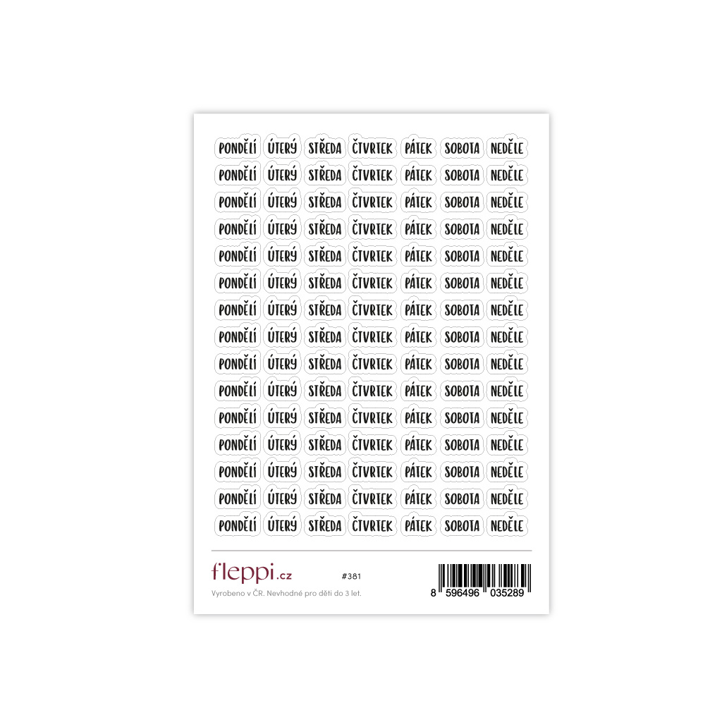 Transparentní samolepky s názvy dnů pro jednoduché tvoření vlastního diáře nebo bullet journalu.