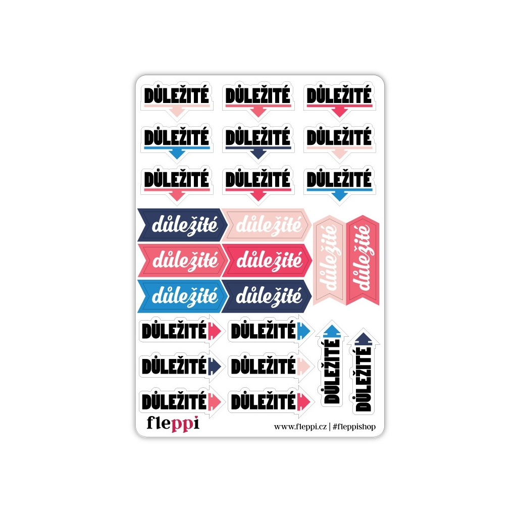 Samolepky s nadpisem Důležité se skvěle hodí pro zvýraznění všech úkolů, které nesmíte ve svém diáři přehlédnout. Arch obsahuje 3 designy samolepek.