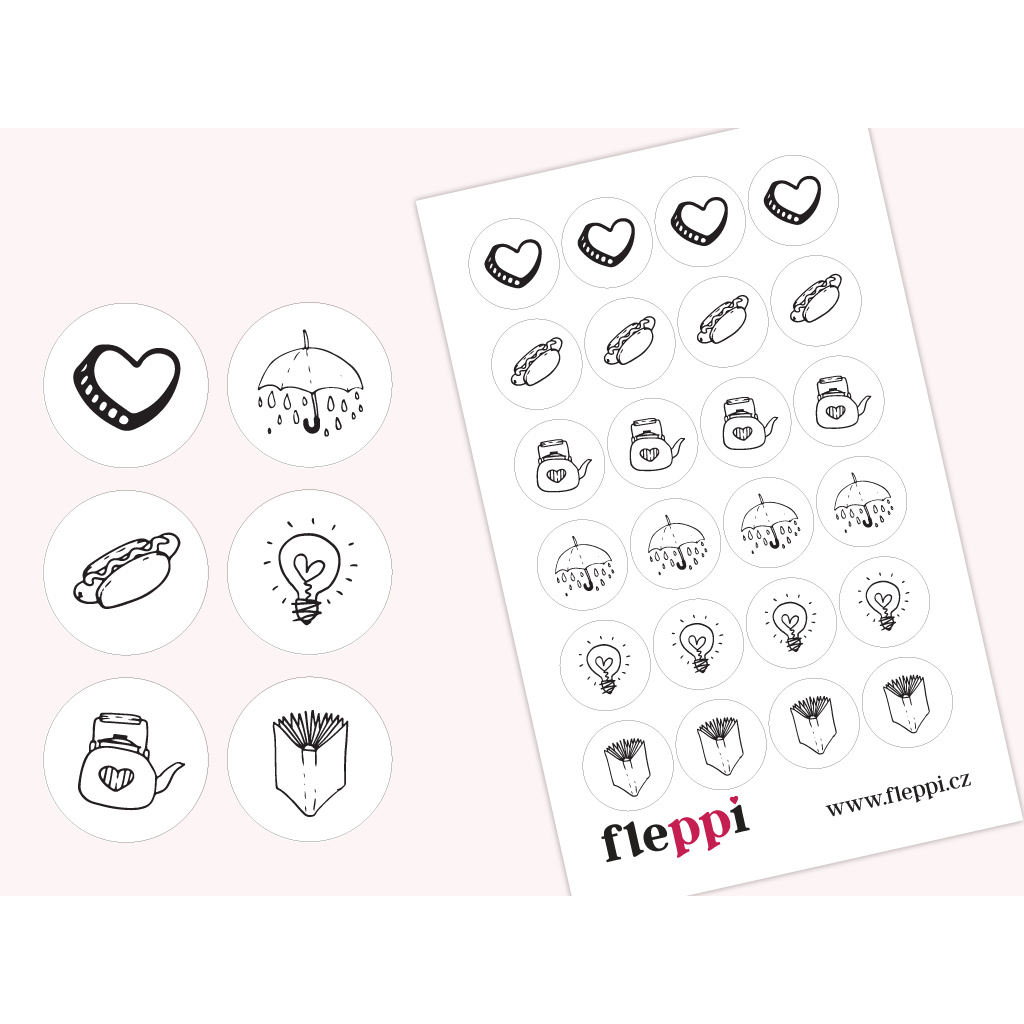 Samolepky ikonek pro minimalistické a funkční plánování ve vašem diáři.