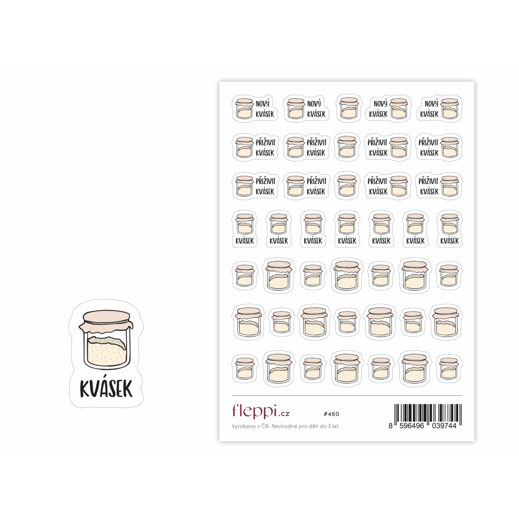 Samolepky Kvásek jsou praktickým pomocníkem pro všechny, kdo si vedou přehled o péči o svůj kvásek a plánují domácí pečení. . Pomohou vám jednoduše zaznamenat důležité momenty – kdy jste kvásek založili, přikrmili nebo použili při pečení..