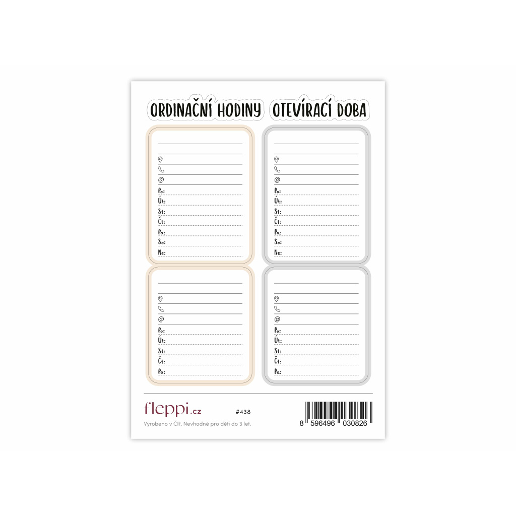 Speciální arch, který slouží k vytvoření speciální stránky v diáři – s tímto archem si můžete v diáři snadno zapsat otevírací dobu vašich oblíbených obchodů a nebo ordinační dobu vašich lékařů.