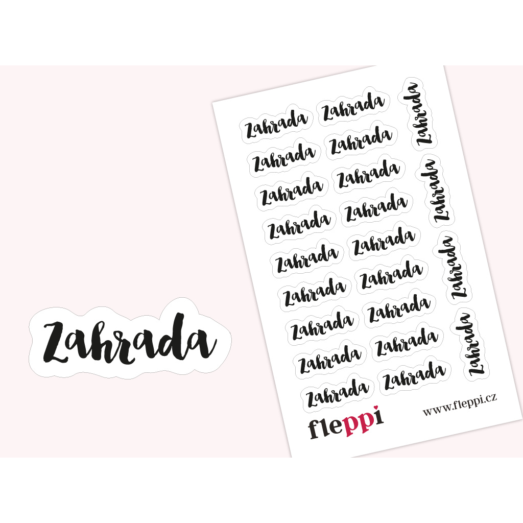 Samolepky s textem Zahrada pro minimalistické a funkční plánování ve vašem diáři.