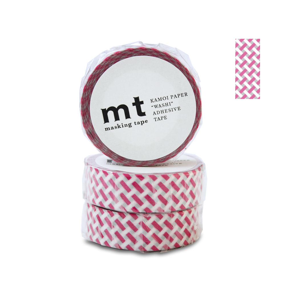 Růžovo bílá washi páska se vzorem košíkového výpletu.