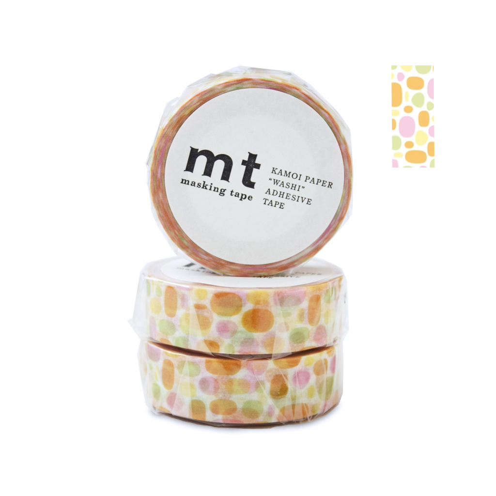 Washi páska s barevnými fleky v odstínech oranžové, žluté a zelené.