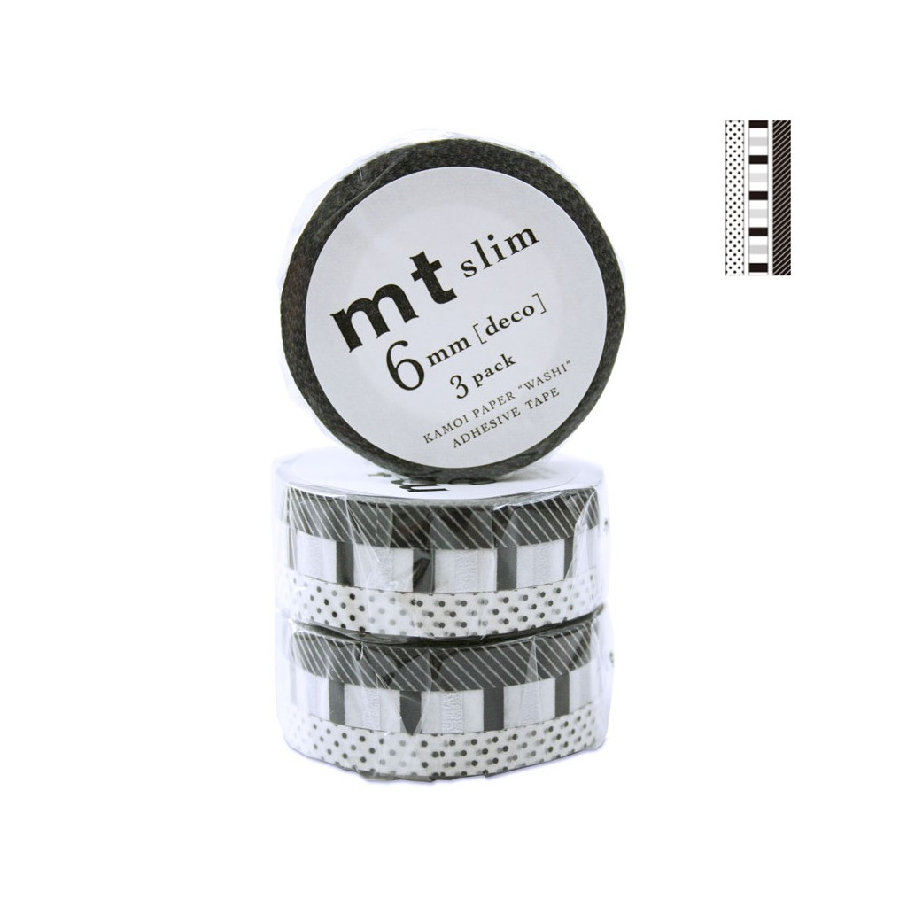 Sada 3 úzkých washi pásek sv černobílé barvě.